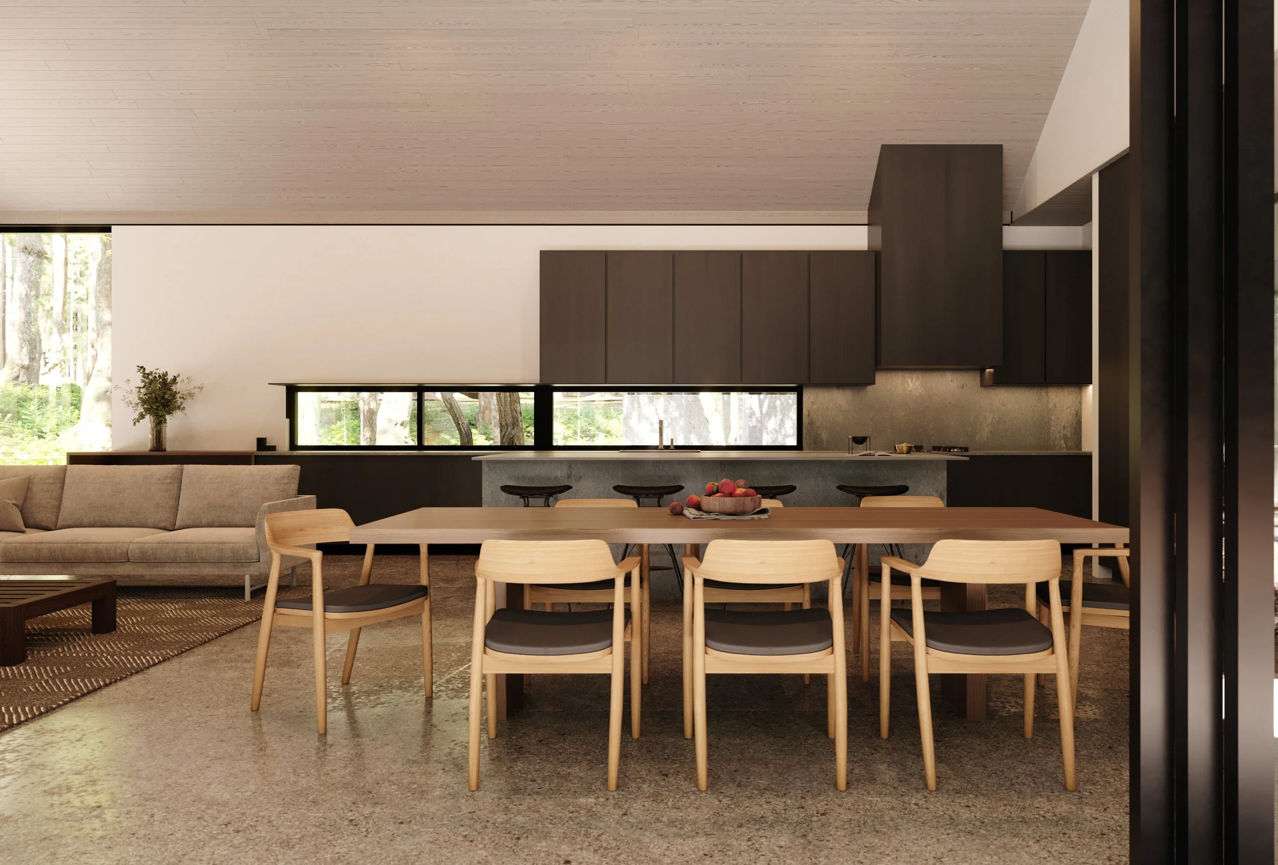 After delivering the Draft 1 packet, we had a series of phone calls with the client as we honed in on views and mood. There was work to be done updating some of the immediate landscape per Alchemie’s plans, and we were having a hard time narrowing down on views. Enter the ‘Macro, Mezzo, Micro’ approach. We’d been doing this naturally prior to this project, but with Vashon we put a name on it. Starting with a distant project overview (Macro), a closer in view highlighting the architecture and materials (Mezzo), and a close-up lifestyle shot that highlights the indoor/outdoor connection of the main living space (Micro). Then we included a couple of lifestyle vignettes to round out the set. This was a winning approach.
