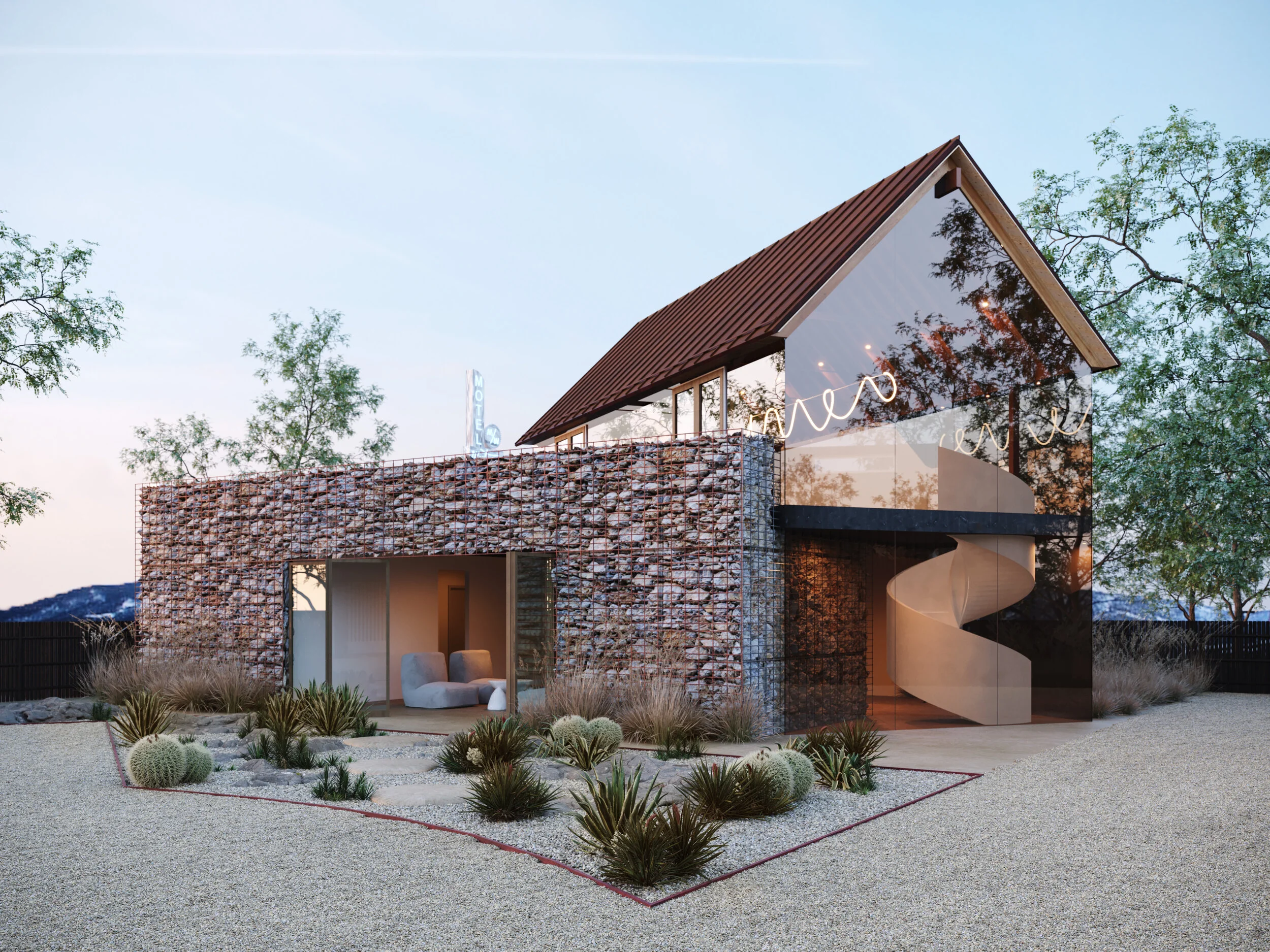 A hip hotel in Salida, CO, the Westerner highlights that bright blue Rocky Mountain sky cast on desert exteriors and warm wood and white interiors.