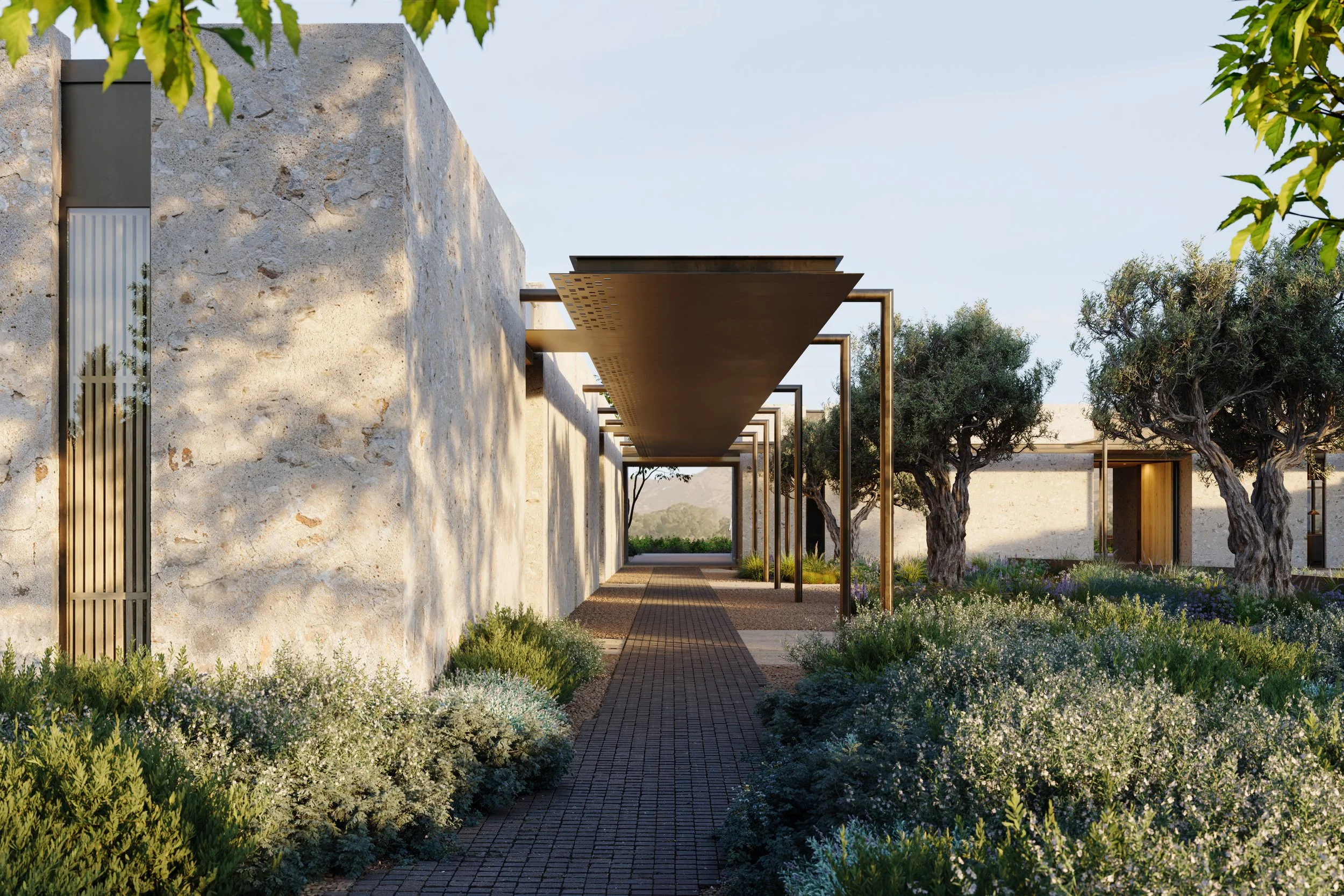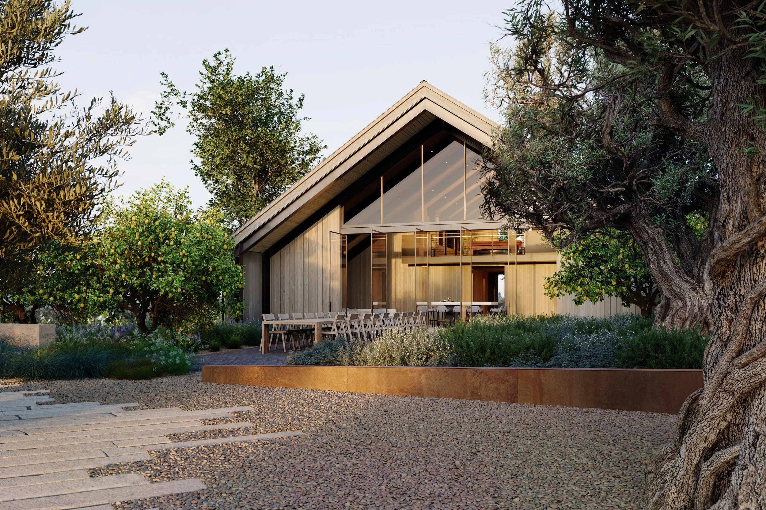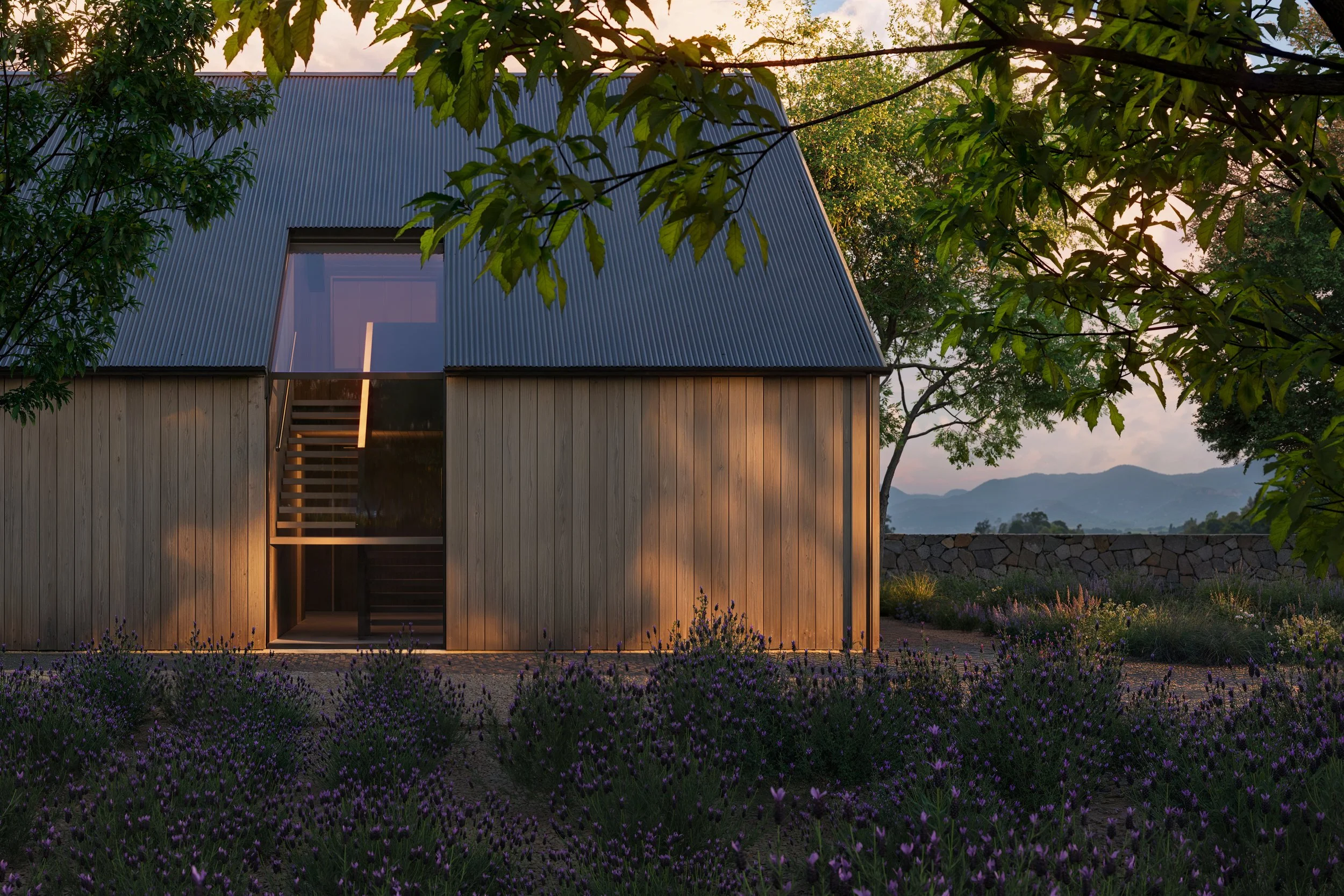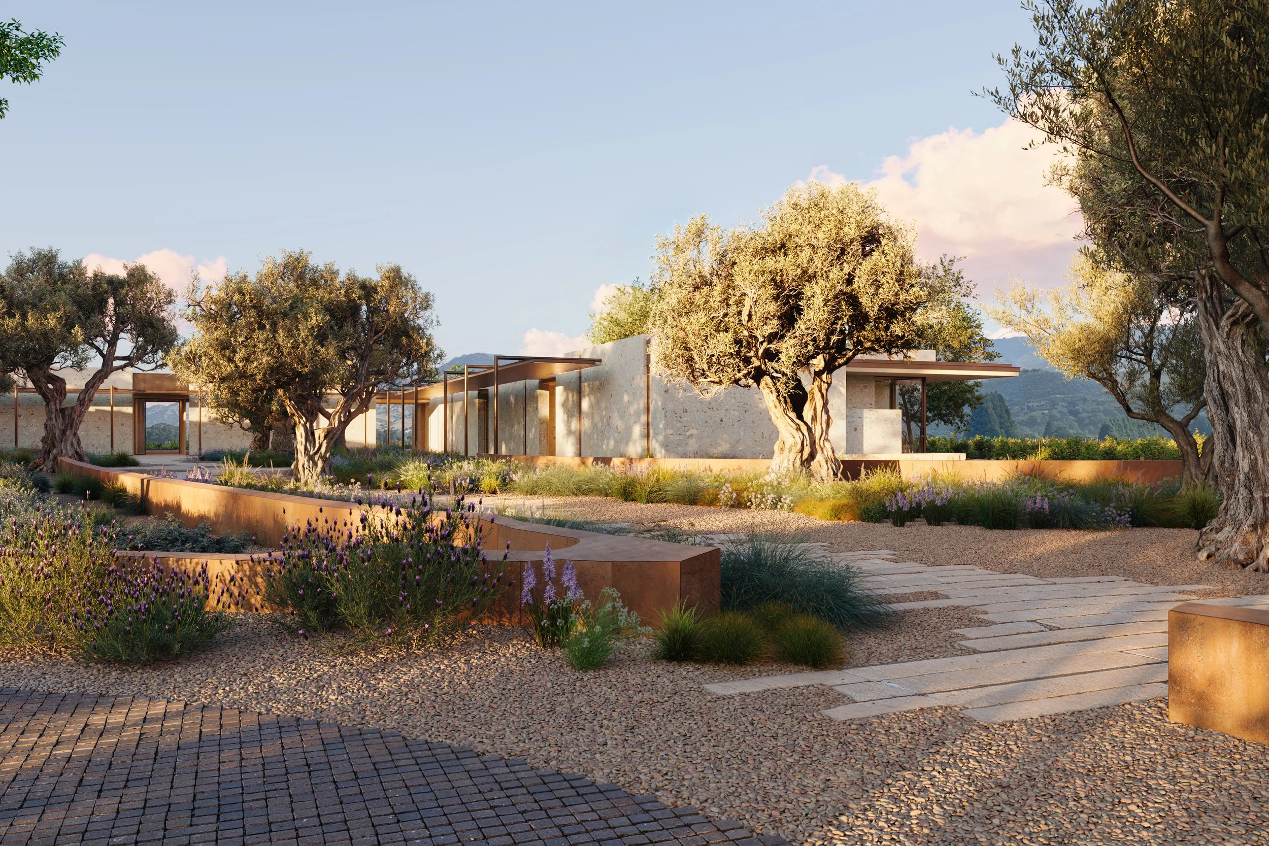 This expansive Napa Valley estate sits in the midst of a lush landscape of olive trees, waving grasses, and grape vines. Of special note for us was getting the unique exterior stone texture to read just right.